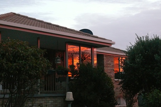 and the reflection in our windows of our new little house! You have to be quick with the sunset, it soon looks ordinary again, but last night it was particularly lovely over the hills. Who says I am missing the water views? Now we are enjoying the mountain and rural outlook which we have from here.